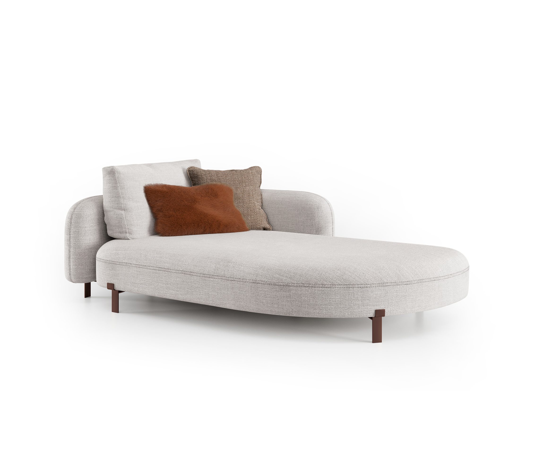 La chaise longue Amulet by BizzottoItalia, dalla forma iconica a goccia sottolineata dalle cuciture a vista. Le moderne gambe in metallo spiccano sulla morbidezza delle imbottiture come nastri sottili. Disponibile con rivestimento in pelle o tessuto per adattarsi ad ogni tipologia di arredamento. Un complemento d’arredo ideale che unisce comfort ed estetica. Può essere inserito in ogni ambiente privato, sia esso camera da letto, home office o soggiorno, per godersi un piacevole momento di relax.