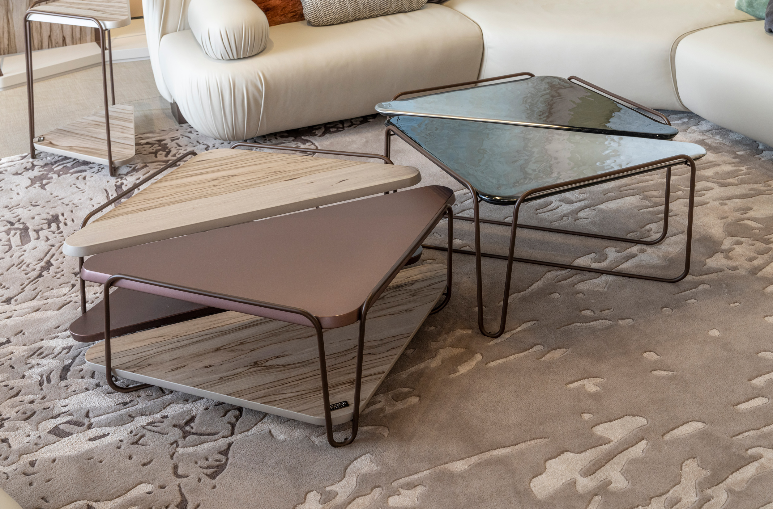 I tavolini componibili Hanami by BizzottoItalia, accostati tra loro come i ciliegi in fiore, creano eleganti e creative composizioni nello spazio. I top dei tavolini, disponibili in legno laccato o essenza, sono sorretti da una struttura in tubolare metallico, una soluzione di continuità che esalta l’effetto di grande leggerezza. Progettati per essere accostati tra loro in infinite composizioni creative, grazie alle loro forme leggiadre consentono una spensierata libertà progettuale e compositiva.