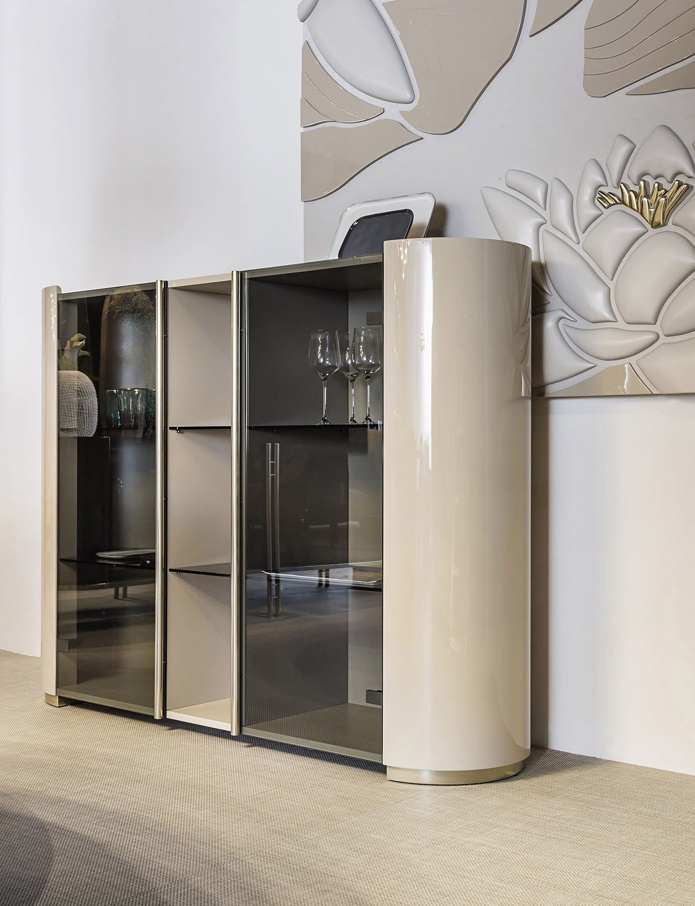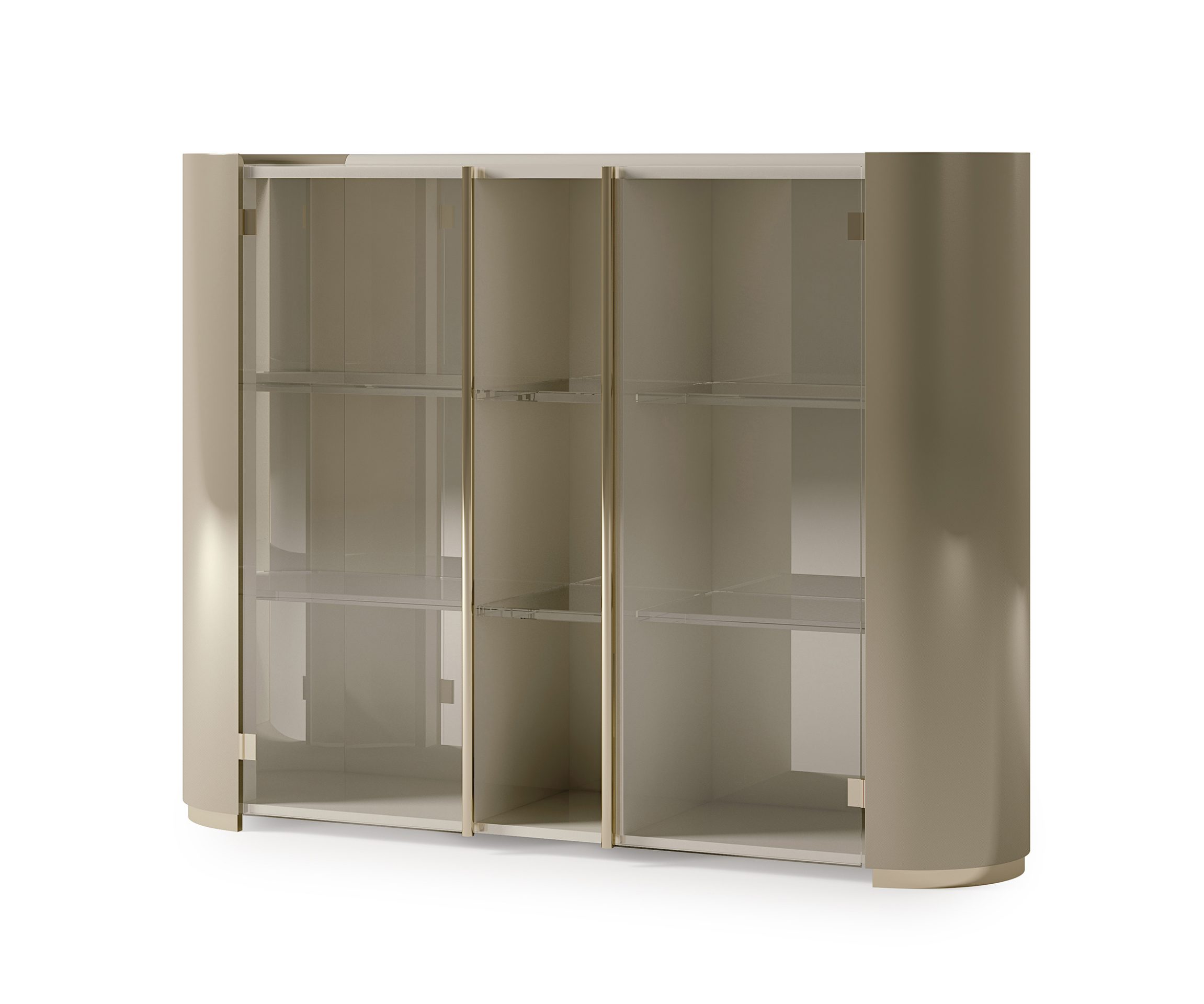 La vetrina Ikat by BizzottoItalia, elegante e sofisticata presenta una forma con angoli arrotondati che le conferisce un aspetto morbido e armonioso. Il vano centrale a giorno, privo di ante, offre uno spazio aperto ideale per esporre libri, vasi o altri oggetti decorativi. Le finiture metalliche dei tondini aggiungono un ulteriore tocco di raffinatezza. Questa vetrina a due ante diventa così un pezzo centrale che aggiunge eleganza e funzionalità a qualsiasi stanza, sia essa un soggiorno, una sala da pranzo o uno studio.