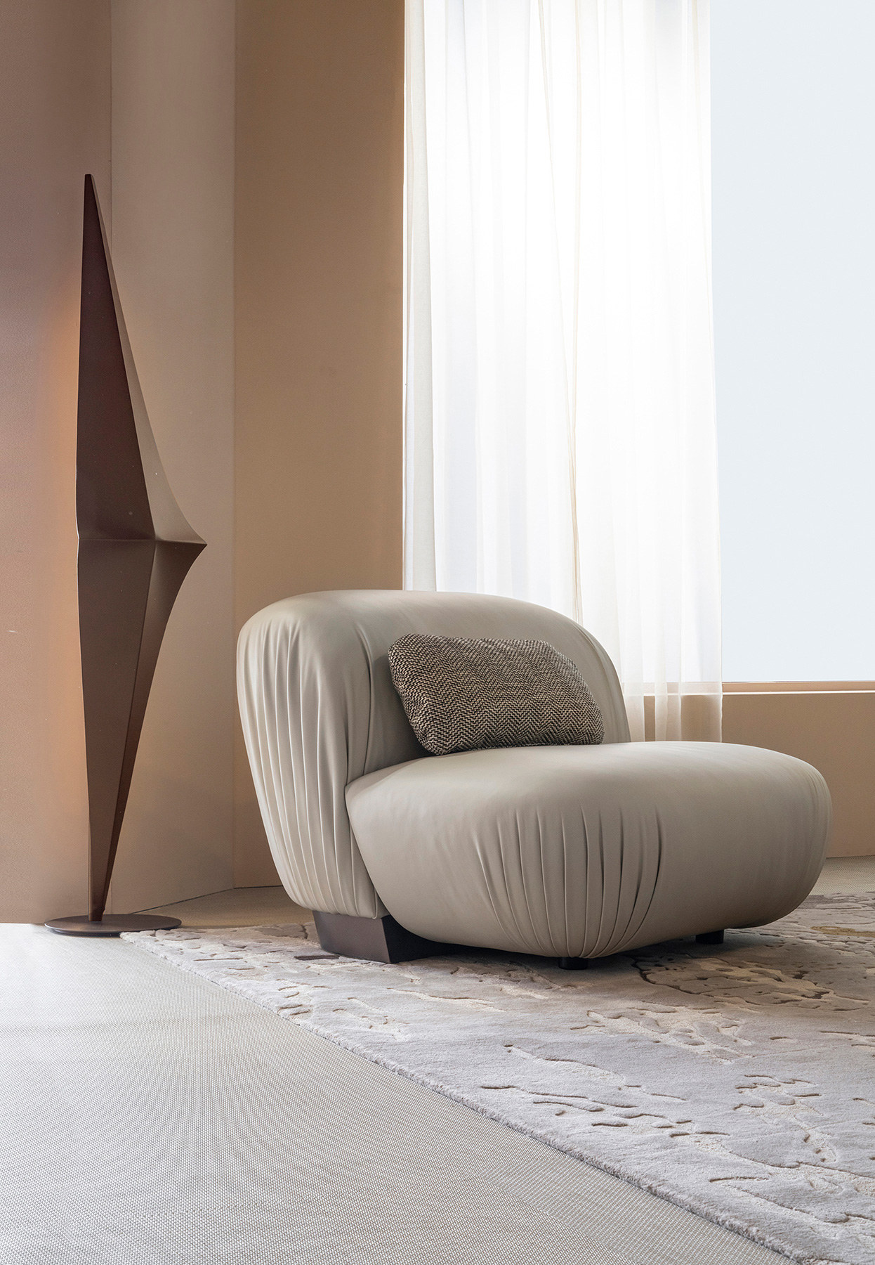 Le poltrone Grand Pliage by BizzottoItalia, arrotondate e soffici la cui eleganza ricorda la sinuosità dei passi di danza. La forma arrotondata suggerisce una sensazione di comfort superiore grazie ai morbidi rivestimenti in pelle, ideali per creare un soggiorno o uno spazio relax accogliente e tutto da vivere. Per un design coordinato è disponibile in abbinamento il morbido pouff della stessa collezione. Un elemento versatile che può essere utilizzato come poggiapiedi o come seduta aggiuntiva, rendendo il tuo spazio ancora più accogliente.
