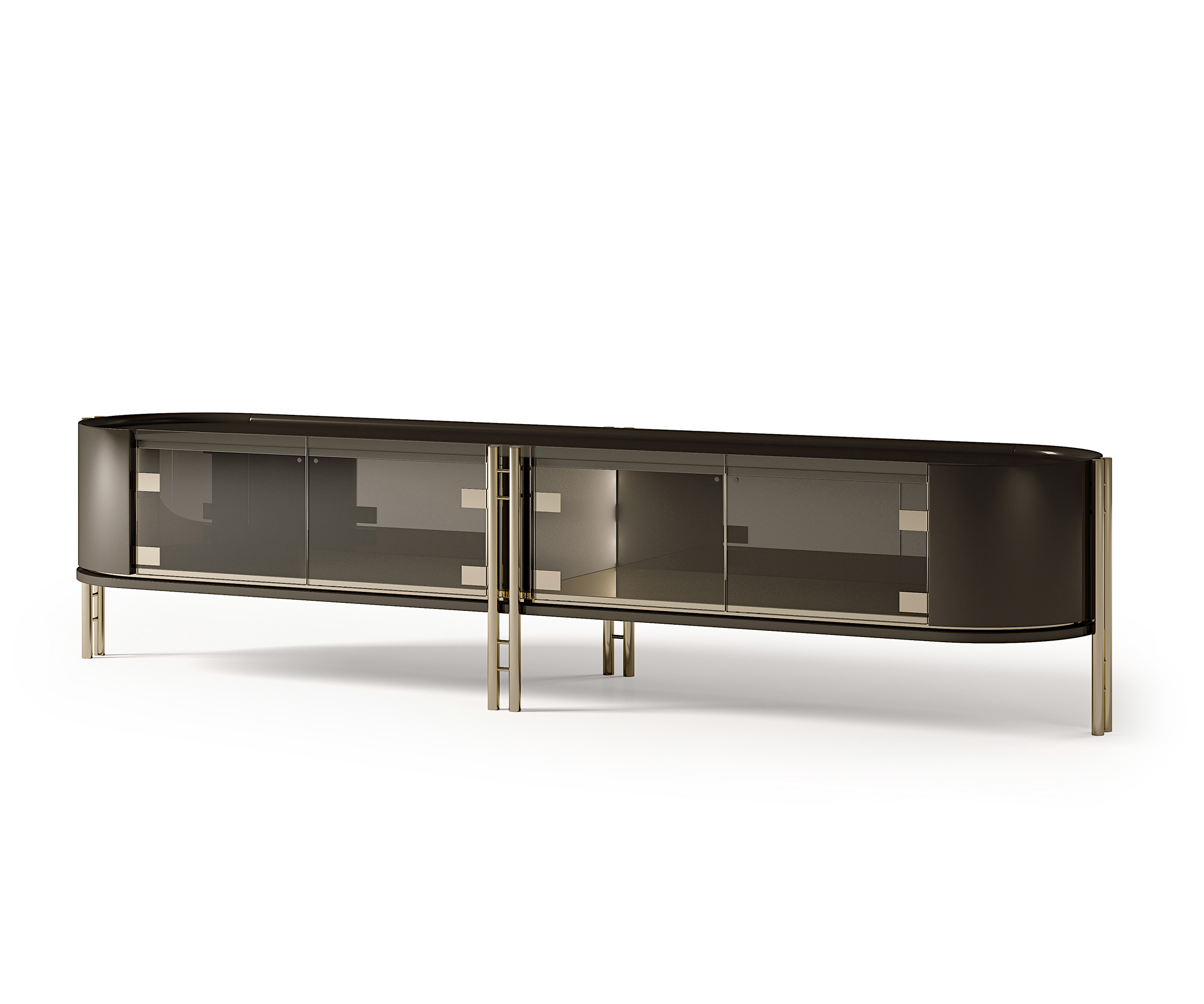 Часть коллекции Ikat, эта низкая тумба выделяется изысканным балансом между формальной сдержанностью и округлой геометрией. Стеклянные фронтальные дверцы, акцентированные тонкими стержнями, создают визуальную игру лёгкости и симметрии, подчеркивая объёмы с мягкими углами и гармоничными пропорциями. Доступная в широком ассортименте лакированных цветов, с матовой или глянцевой отделкой, низкая тумба Ikat органично вписывается как в минималистичные интерьеры, так и в более классические пространства — благодаря своему вневременному дизайну. Утопленная столешница и линейная структура подчеркивают изящный силуэт, а тонкие ножки придают композиции современный штрих. Идеальна и как консоль за диваном, эта мебель дополняет современный стиль с элегантностью и характером.